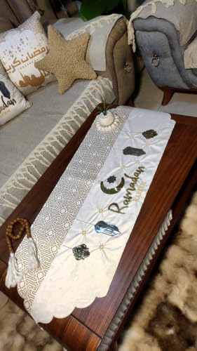 - خامة قطيفة مطرزة بجودة عالية ومقاومة للبهتان والانكماش تصميمات متعددة تناسب كل أذواق وألوان البيت يأتي داخل كرتونة هدايا أنيقة — مثالي كهدية رمضان ظهر الرنر جلد لثبات وشكل أفخم يشمل رنر 120×45 + 2 كفر كوشن 45×45 تطريز راقٍ يضيف فخامة للسفرة أو الترابيزة سهل التنظيف ومتين للاستخدام اليومي مثالي لشهر رمضان والمناسبات