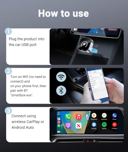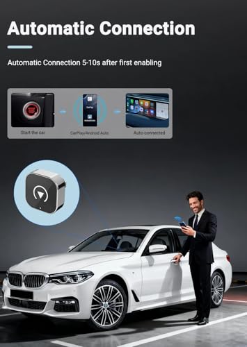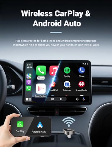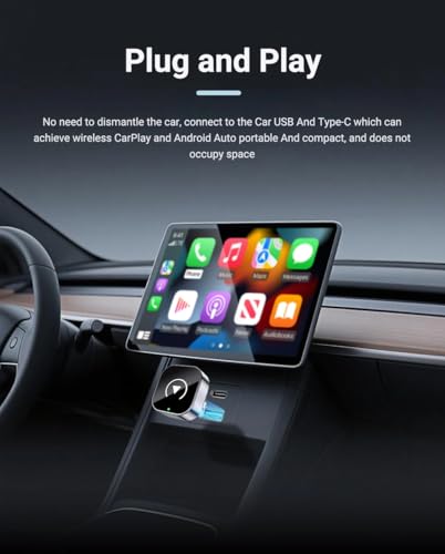 - توافق واسع النطاق: يعمل مع 98% من سيارات كاربلاي السلكية من المصنع. يدعم ايفون (اي او اس 10+) واندرويد (اندرويد 11+). يتضمن محول USB إلى USB-C لكل من منافذ USB وUSB-C للسيارة. (لا تشتري إذا لم تكن سيارتك تحتوي على كاربلاي / اندرويد اوتو مدمج.)