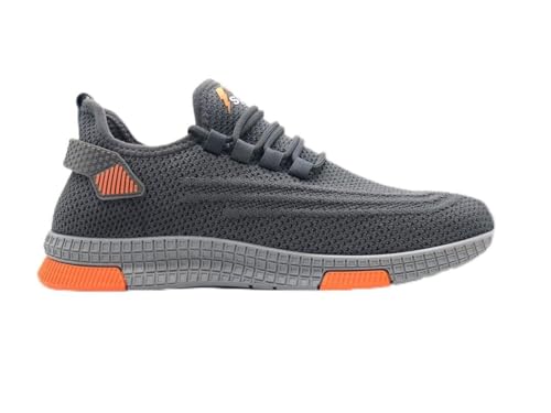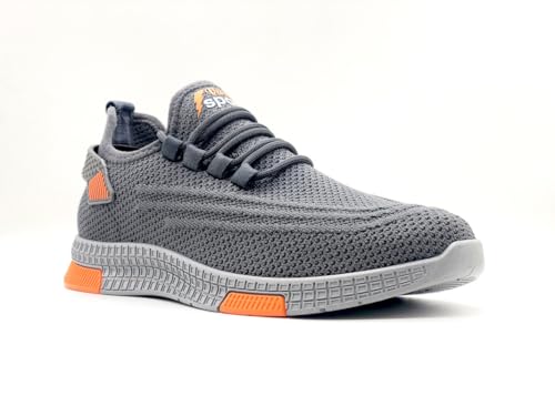 VInITTO - حذاء رياضي شبكي للرجال من فينيتو 209155-2491551800 - حذاء جري خفيف الوزن وجيد التهوية بتصميم برباط - رمادي وبرتقالي، مقاس 44 EU