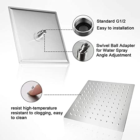 - 1- رأس دش المطر كبير: رأس دش المطر رقيق للغاية وحديث، رأس دش مربع كبير 20 سم مع تغطية كاملة للجسم، احصل على تدليك مائي ديناميكي للجسم بالكامل