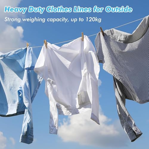 - طول كبير: يوفر حبل الغسيل الذي يبلغ طوله 20 مترًا مساحة واسعة لتعليق العديد من الأحمال من الغسيل، مثالي للاستخدام في الحديقة الخارجية