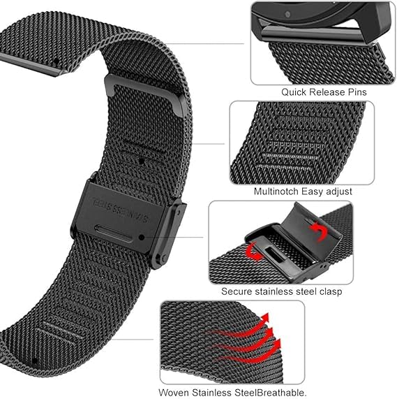 Generic - سوار معدني من الستانلس ستيل مقاس 20 ملم لساعة سامسونج جالاكسي ووتش 4 / جالاكسي ووتش 4 كلاسيك / جالاكسي ووتش 3 41 ملم / جالاكسي اكتيف 2 / جير سبورت / جي تي اس -