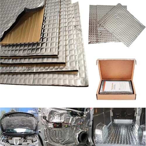 Homodoskey - 20 قطعة من حصيرة عزل الصوت والحرارة بسمك 10 ملم مطورة مقاومة للاشتعال لصوت السيارة، فوم عازل للصوت لغطاء حيز المحرك وسقف صندوق السيارة (2 متر مربع)