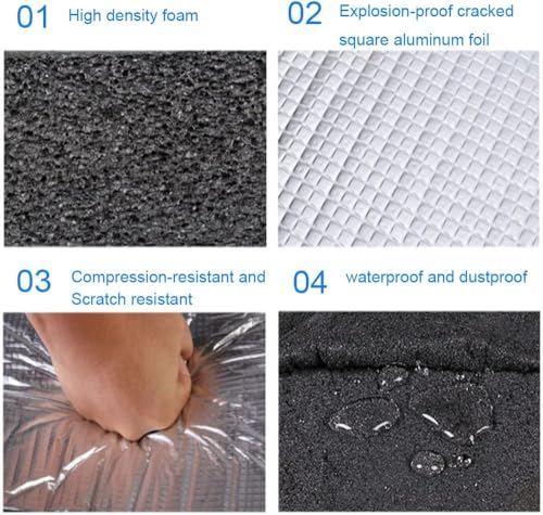- 【مادة عازلة للحرارة】بساط تخميد الصوت مصنوع من إسفنج عالي الكثافة مغلق الخلايا مع سطح من الألومنيوم المقاوم للماء، لذلك يمكن أن يعكس ويحجب معظم الحرارة من الشمس أو الجهاز أو تشغيل المحرك، مما يقلل من استهلاك طاقة مكيف الهواء ويوفر الوقود.