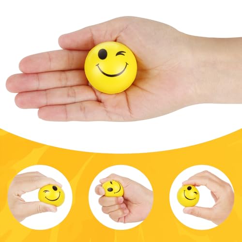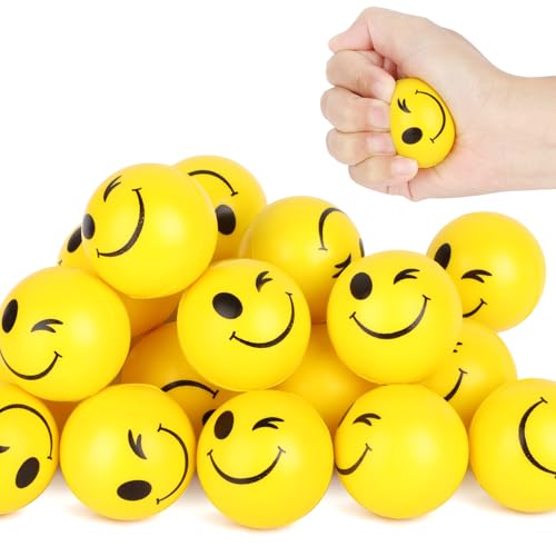 Atiloy - 20 قطعة من العاب الضغط على الوجه، كرات ضغط صفراء مضحكة للاطفال، كرة اسفنجية صغيرة لتخفيف التوتر للاطفال والبالغين في الفصول الدراسية، مستلزمات تزيين الحفلات الحسية