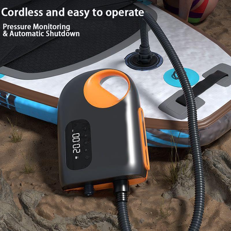 RGSGZCO - منفاخ اس يو بي كهربائية 20 رطل لكل بوصة مربعة مع بطارية 10000 مللي أمبير في الساعة، مضخة زورق 12 فولت تيار مستمر، مضخة هواء كهربائية مع إيقاف تلقائي وشاشة ال سي دي رقمية لألواح التجديف والكاياك