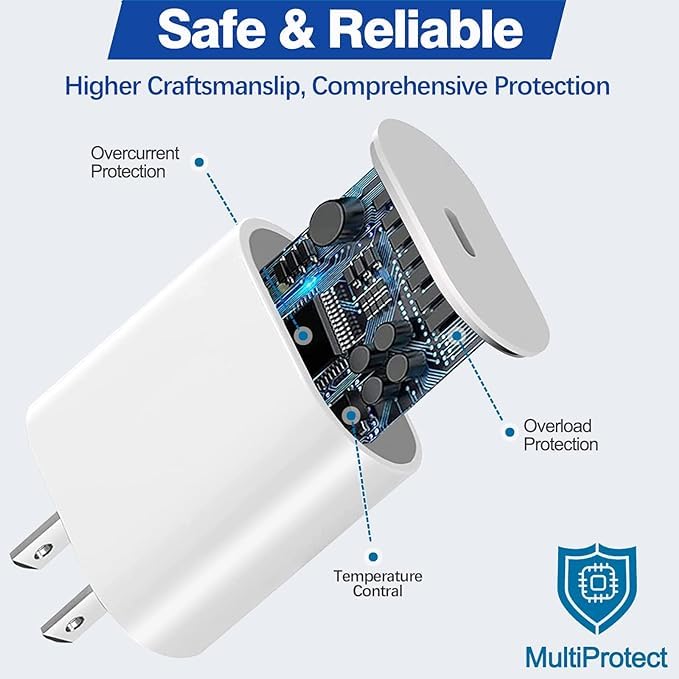 - شاحن فائق السرعة 20 واط [رقاقة معتمدة من ام اف اي] 20 واط مع كابل لـ 5/6/7/8/11/12/13/14/X/XS/برو ماكس بلس.