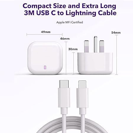 TopPrime - محول طاقة 20W [معتمد من MFI] سريع مع كابل USB C بطول 91 سم من USB C لآيفون 13/14/14 بلس/12/برو/برو ماكس/11/ايربودز برو/ايباد اير 3/Other Model (20W 3-Pin)