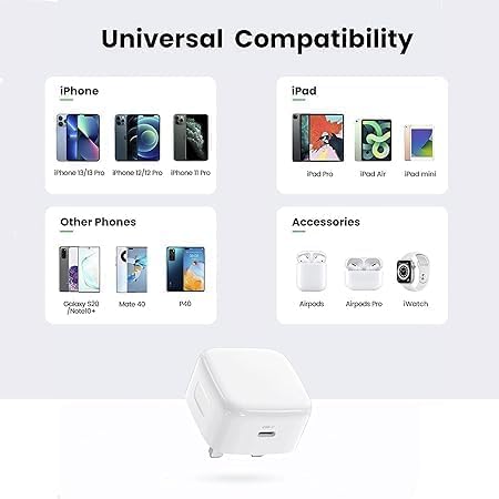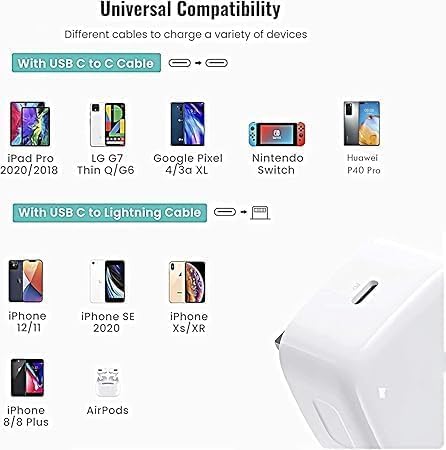 - شاحن سريع: محول طاقة بقدرة ٢٠ واط يوفر شحناً سريعاً وفعالاً لأجهزة آيفون وايباد