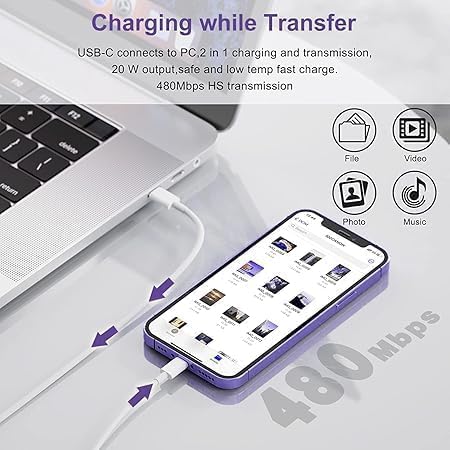- كابل مميز: كابل يو إس بي سي بطول ٩١ سم مصنوع من النحاس عالي الجودة لنقل البيانات والشحن بكفاءة