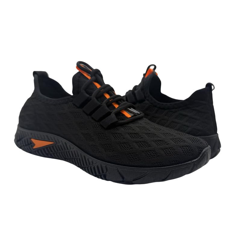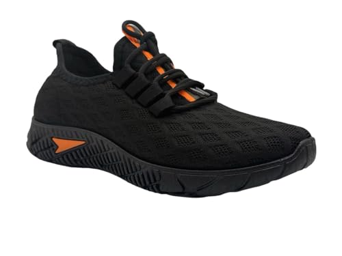 VInITTO - حذاء رياضي للجري للرجال 216140-2361400200 - حذاء رياضي خفيف الوزن ومزود بمسامات للتهوية، من فينيتو، لون أسود وبرتقالي مقاس 43 EU