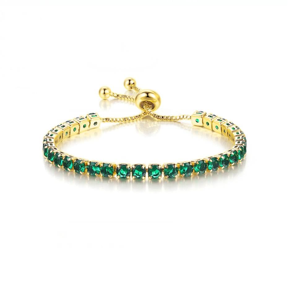 Generic - سوار تنس كلاسيكي مطلي بالذهب عيار 21 قيراط ومرصع بالزركونيا الاخضر الكريستال المكعب 3 ملم | اساور بالذهب الابيض للنساء