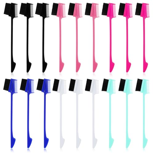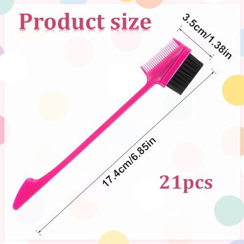 Gsbnjuy - 21 قطعة فرشاة شعر مزدوجة الجوانب 3 في 1 فرشاة حافة الشعر مشط ذيل فار شعيرات ناعمة مشط شعر مشط تصفيف الشعر مجموعة فرش شعر طبيعية للنساء الغرة خط الشعر والرموش