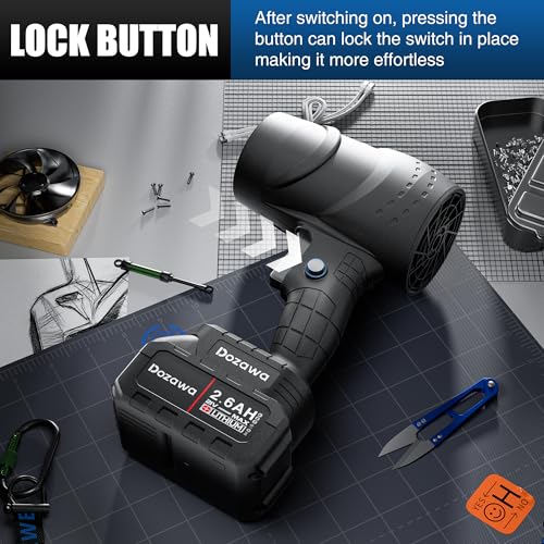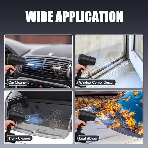 - أداة تنظيف متعددة الاستخدامات: منفاخ هواء مثالي متعدد الأغراض للاستخدام كمجفف سيارة، أو منفاخ أوراق صغير للباحات والأسطح، أو منفضة هواء قوية لتنظيف ورش العمل والأثاث الخارجي.