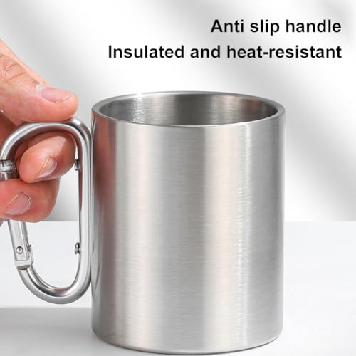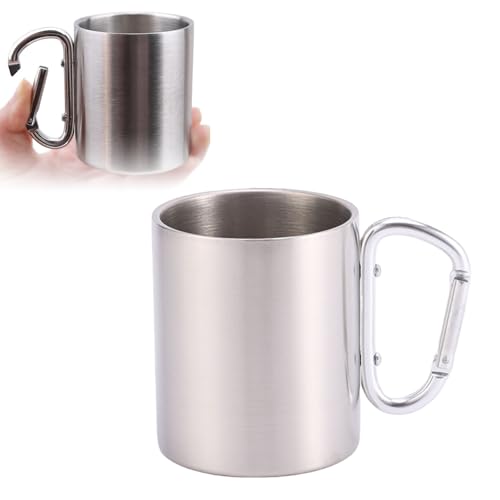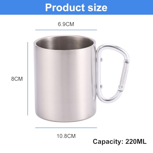 Doukesh - كوب تخييم من الستانلس ستيل سعة 220 مل، كوب شرب للتخييم مع حلقة تثبيت، كوب خارجي للرحلات والمشي لمسافات طويلة، خال من البيسفينول ايه