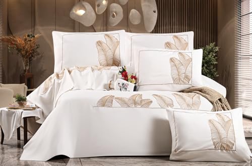 Generic - طقم ملاءة سرير قطن 100% مزينة بتطريز بنمط أوراق الشجر والزهور، لون أبيض مقاس 2.25 × 2.60 متر