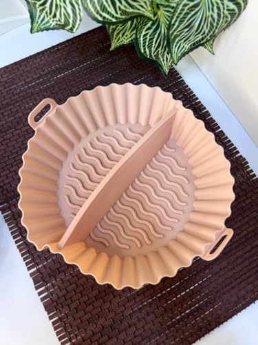 Generic - طبق مقلاة هوائية من السيليكون مقسم 22 سم - سيليكون ممتاز امن غذائيا، مقاوم للحرارة، غير لاصق، يحافظ على الطعام منفصلا، سهل الطهي، خالي من الفوضى، أساسيات المطبخ العملية (قطعة واحدة)