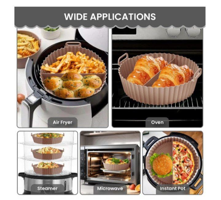 - سيليكون ممتاز آمن غذائيًا: مصنوع من سيليكون صحي عالي الجودة ومرن ومتين ومقاوم للحرارة. مثالية للاستخدام في المقلاة الهوائية دون إطلاق مواد كيميائية أو روائح ضارة.