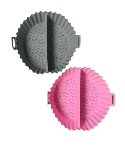 Generic - طبق مقلاة هوائية من السيليكون المرن المقسم مقاس 22 سم - تصميم عملي للطهي بدون خلط النكهات، امن على الطعام، مثالي للوجبات العائلية اليومية، طبخ سهل ونظيف (قطعتان)