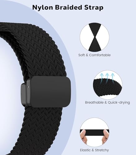 Dl3 Mobilak - سوار رياضي مغناطيسي متوافق مع ساعة سامسونج جالاكسي وهواوي وأمازفت، مصنوع من النايلون المجدول للجنسين مقاس 22 ملم