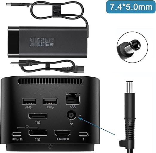 Generic - محول طاقة 230 وات، مع كابل طاقة، متوافق مع محطات عمل اتش بي، أسود