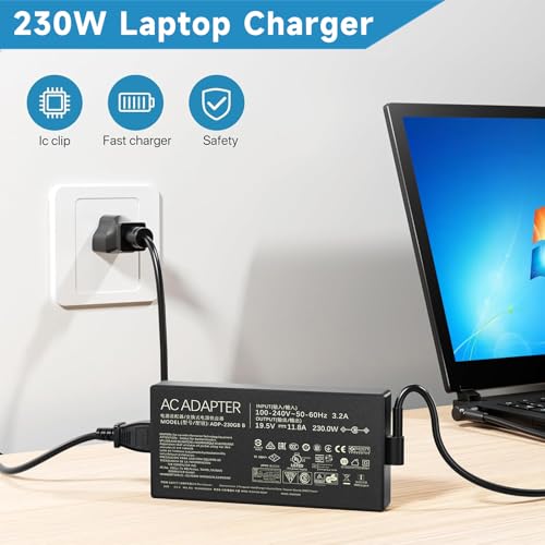 - تم تصميم محول التيار المتردد 230 واط لأجهزة لاب توب الألعاب روج عالية الأداء مقاس 15 انش و17 انش، ويوفر شحنًا سريعًا وفعالًا في المنزل أو في المناسبات الرياضية الإلكترونية أو أثناء التنقل.