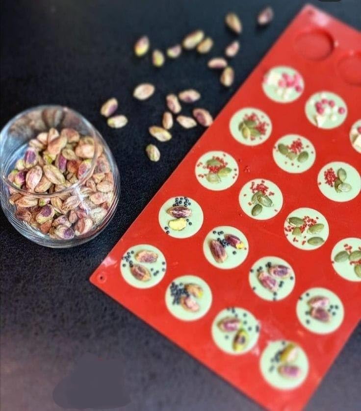 - قالب صناعة الجيلى والحلوى والهلام مكون من24 تجويف شكل دوائر مثل العملات لصب الشيكولاتة