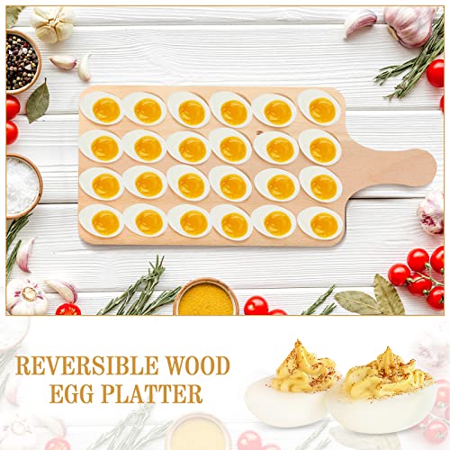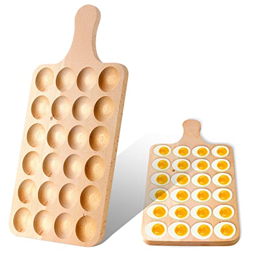 Teling - طبق تقديم بيض محشو من الخشب قابل للاستخدام على الوجهين مع 24 ثقب ولوح شاركوتيري بتصميم ريفي مناسب لتقديم البيض المسلوق والجبن والطعام كطبق تقديم وحامل أطباق