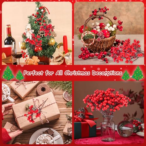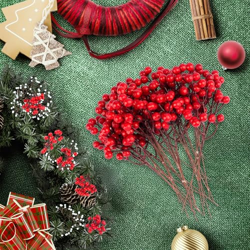 - 24 قطعة من سيقان التوت الأحمر: تتضمن 24 قطعة من التوت الأحمر الصناعي، كل منها يحتوي على 12 قطعة من التوت الأحمر النابض بالحياة. عديم الرائحة وآمن للاستخدام، مثالي لتزيين شجرة الكريسماس، ديكور إكليل الكريسماس، الحرف اليدوية