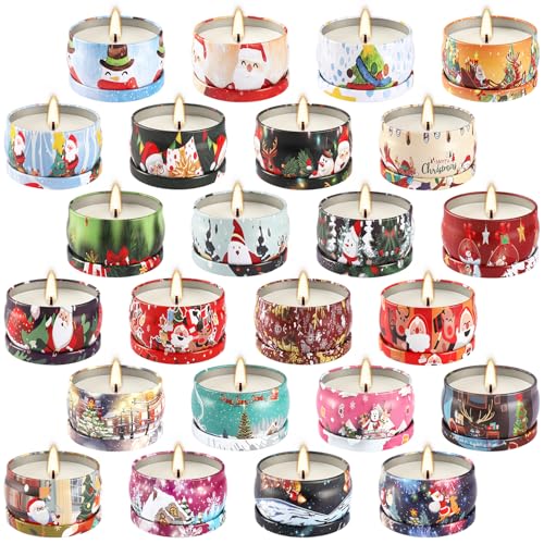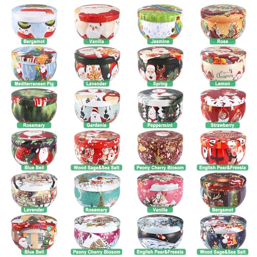 Wfmolcand - شموع عطرية برائحة موسمية خاصة بأجواء الكريسماس للاسترخاء – 70.87 جرام من شمع الصويا – وقت احتراق يدوم طويلًا، هدايا مناسبة لعيد الميلاد وعيد الشكر ولأغراض الديكور المنزلية عبوة من 24 قطعة