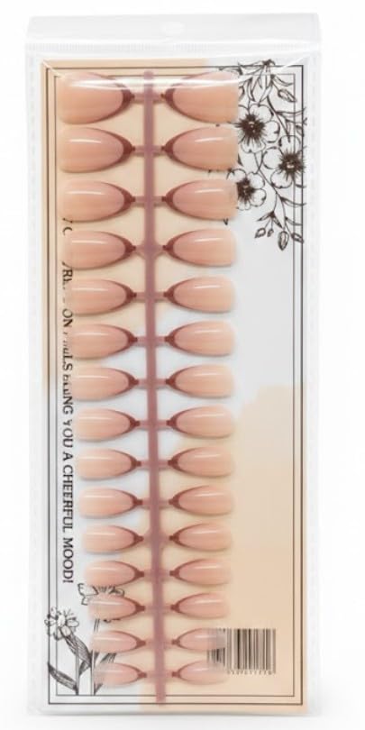 Generic - مجموعة اظافر صناعية فرنسية بيضاوية من 24 قطعة بلون بيج نود مصنوعة من الاكريليك مع طبقة واحدة مزدوجة الوجه (N5)