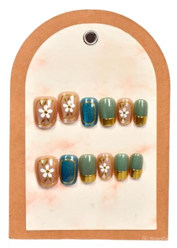 Generic - أظافر مطليه قابلة للضغط بتصميم أزهار، لون وردي عاري مع زخارف فضية وذهبية، 24 قطعة، متوسطة الطول، قابلة لإعادة الاستخدام، مثالية للمناسبات والحفلات