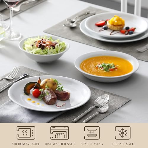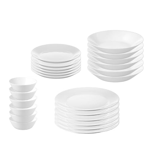 Generic - طقم عشاء بورسلين مكون من 24 قطعة، يتضمن 6 أطباق حلوى، 6 أطباق عميقة، 6 أطباق مسطحة آمن للاستخدام في غسالة الصحون والميكروويف، أبيض