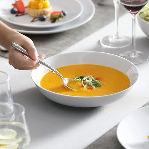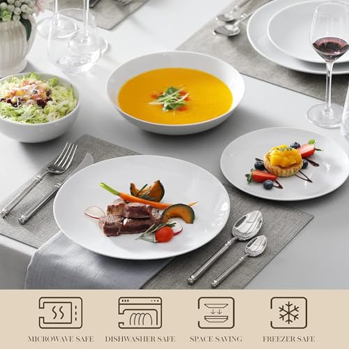 Generic - طقم عشاء من البورسلين مكون من أطباق مستديرة حديثة لستة أشخاص ووعاء تقديم فاخر للحلويات والسلطات والشوربة والمعكرونة، 24 قطعة
