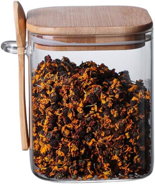Generic - برطمان زجاج مربع لحفظ التوابل والبقوليات سعة 240 مل مع غطاء بامبو محكم وملعقة خشبية لتخزين مرتب وحفظ النكهات وإضفاء لمسة أنيقة على المطبخ