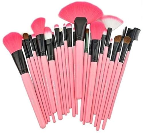 غير معروف - مجموعة فرش مكياج الوجه 24 قطعة مع حقيبة بلون زهري