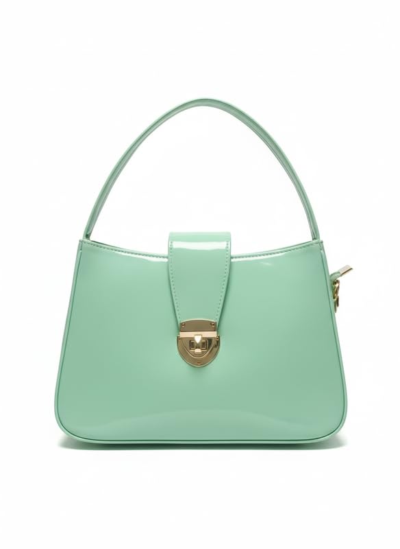 Generic - شنطه حريمى كروس كتف جلد لامع مع قفل دهبى - حجم وسط 25 سنتى متر فى 20 سنتى متر - منت جرين