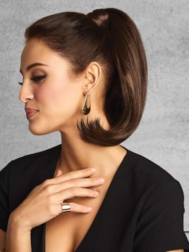 - شعر مستعار بقصة مستقيمة بتسريحة ذيل حصان R4 بطول 25 انش بلون بني داكن - شعر مستعار لتصفيف الشعر، مقاوم للحرارة، ذيل حصان صناعي، مكياج مجعد، قطعة شعر مكواة مسطحة