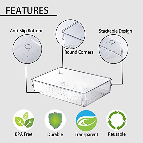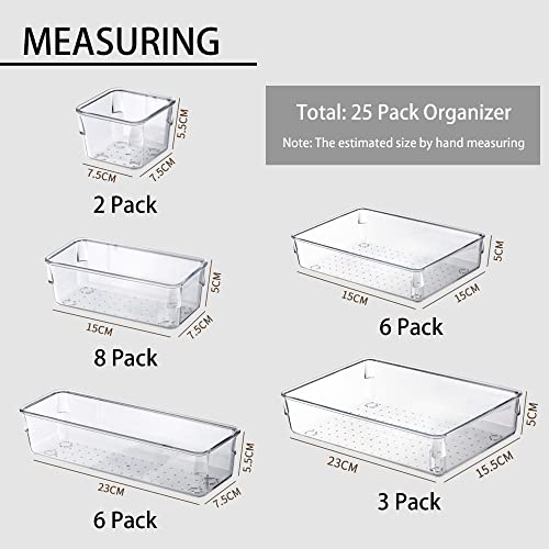 SIMTWO - صينية تنظيم أدراج المكتب، منظمات أدراج الحمام من الاكريليك، صناديق تخزين مكياج شفافة، منظمات أدراج دولاب الملابس بـ 5 مقاسات، لتخزين المجوهرات وأدوات المطبخ وغرفة النوم والمكتب، 25 قطعة