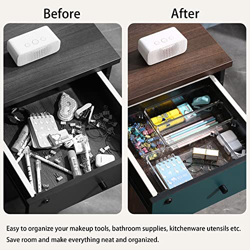 - مناسبة للعديد من الأماكن: يأتي كل منظم أدراج الدولاب مع زوايا دائرية، مما يضمن عدم خدش يدك وتقديم تجربة أفضل. مجموعة متنوعة من المقاسات يمكن أن تناسب أي درج وترابيزة للحمام وغرفة النوم والمطبخ وغرفة المعيشة وغرفة المكتب والغسيل وما إلى ذلك.