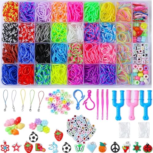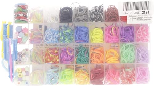 - مجموعة إعادة تعبئة بأكثر من 2500 أستك نول لصنع الأساور، 30 لون، 2500 أستك نول، 96 مشبك على شكل حرف S، 3 لوم على شكل حرف Y، 3 خطافات، 40 خرزة ملونة، 5 خرزات فاكهة، 5 خرز زهور، 15 دلاية مطاطية، 2 خطاف ملون، صندوق تخزين.