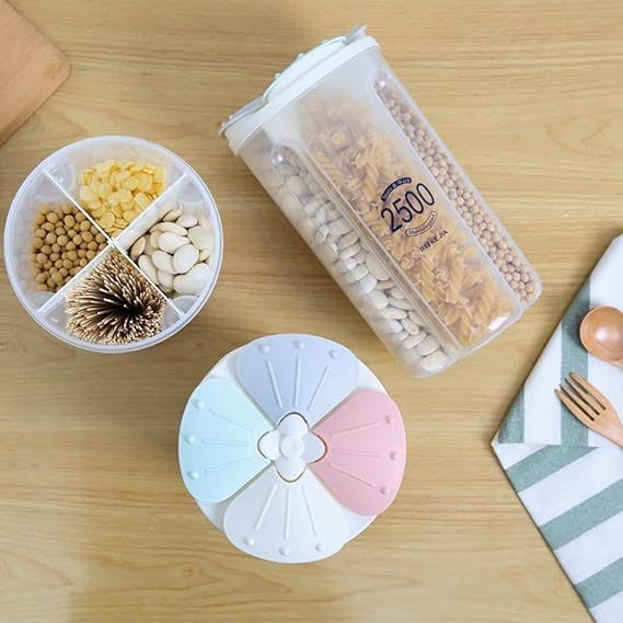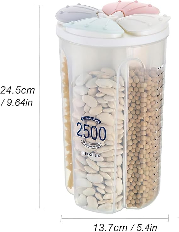 Generic - منظم بقوليات سعة 2500 مللي مقسم 4 أجزاء بتصميم عملي وخامة عالية الجودة لحفظ الأطعمة وتنظيم المطبخ