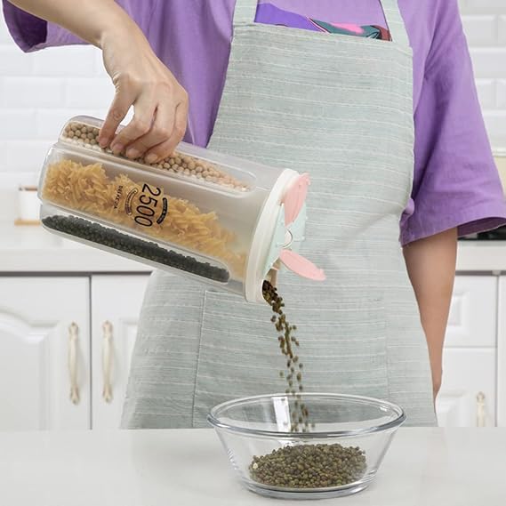 - سعة ضخمة 2500 مللي تكفي احتياجات البيت اليومية من البقوليات والحبوب، وتغنيك عن استخدام أكياس أو علب كتير على الرف.