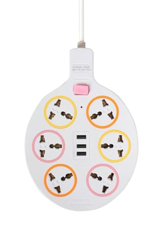 Generic - مشترك كهرباء دائري 2500 واط مع 6 مخارج طاقة و 3 منافذ USB بحد أقصى 10 أمبير، أبيض مع حلقات ملونة مع زر رئيسي إيقاف/ تشغيل بطول سلك حوالي 180 سم