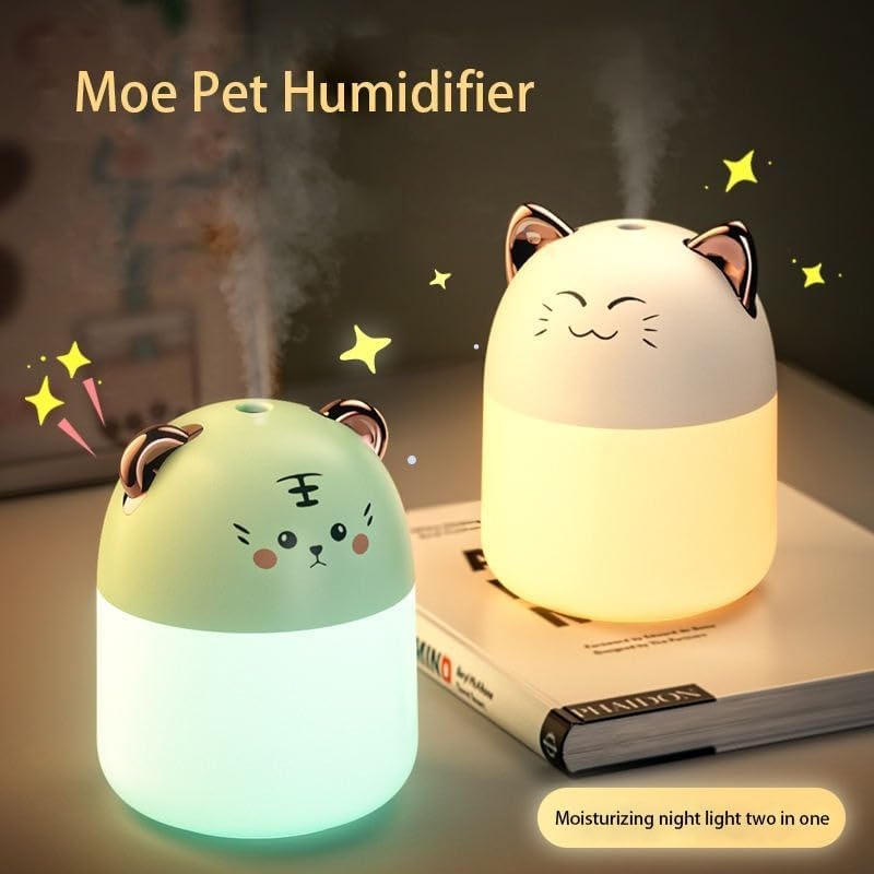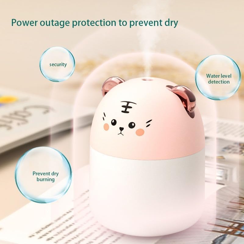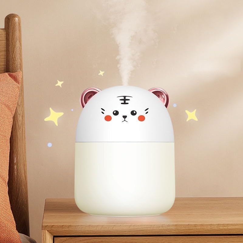 Generic - مرطب هواء صغير محمول وموزع زيوت عطرية مع ضوء ليلي مثالي للمنزل والمكتب والسيارة وتنقية النباتات سعة 250 مل مع إضاءة ليلية ليد بـ7 ألوان (Angry Tiger White)