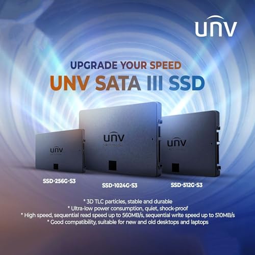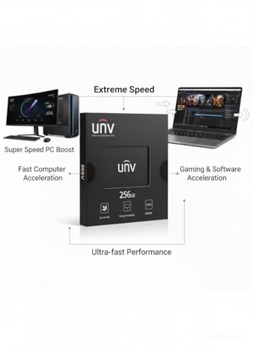 Uniview - هارد SSD 256 جيجابايت SATA III مقاس 2.5 بوصة لتسريع الكمبيوتر واللابتوب وأجهزة التسجيل – قرص تخزين ثابت عالي الأداء بديل للهارد HDD – سرعة قراءة حتى 560MB/s وكتابة 510MB/s – UNV SSD-256G-S3