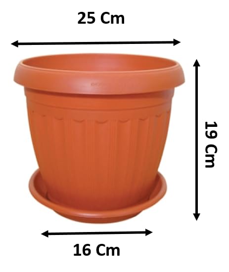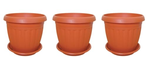 Generic - اصيص زراعة بني مقاس 25 سم مع طبق بقطر 19 سم - 3 قطع - اصيص نباتات بني الماني مقاس 25 سم مع طبق بقطر 21 سم - 3 قطع - تصميم الماني