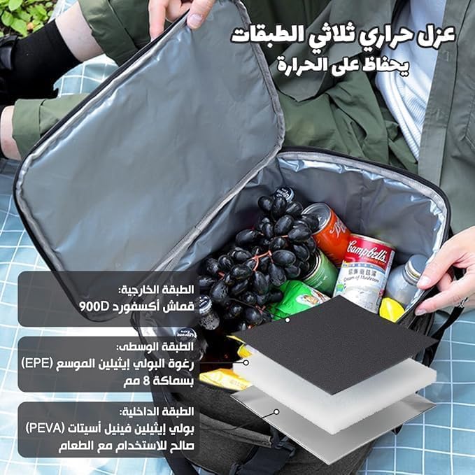 Generic - شنطة تبريد كبيرة معزولة حراريًا سعة 25 لتر، جزء داخلي مقاوم للماء والتسريب، حقيبة طعام قابلة لاعادة الاستخدام مع حزام كتف قابل للتعديل للعمل والمكتب والرحلات المدرسية والنزهات، اسود