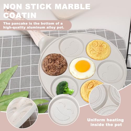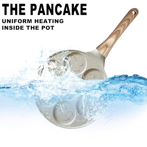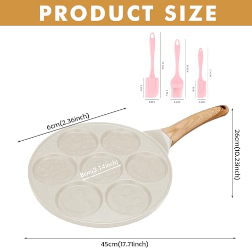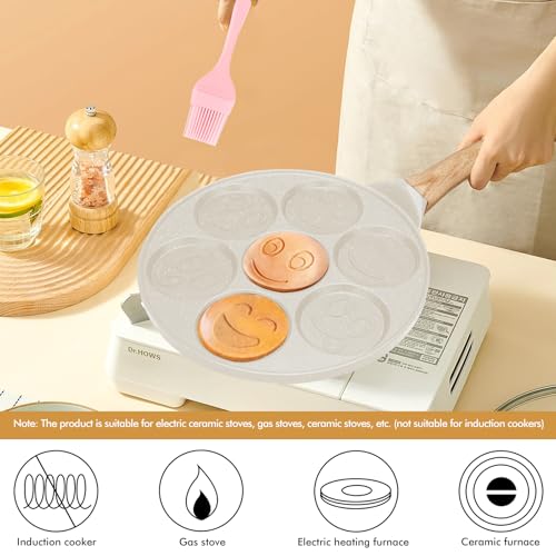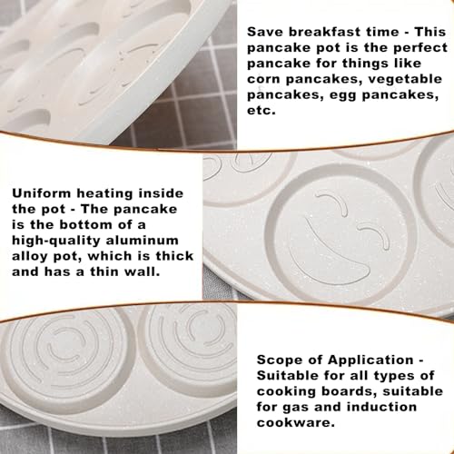MEGYAD - طاسة بان كيك 26 سم مقاومة للالتصاق بسبع فتحات لصنع الكريب مع وجوه مبتسمة، صينية بان كيك للغاز وما إلى ذلك، طاسة لعمل الكريب للأومليت والبان كيك والبرجر (مشمش)