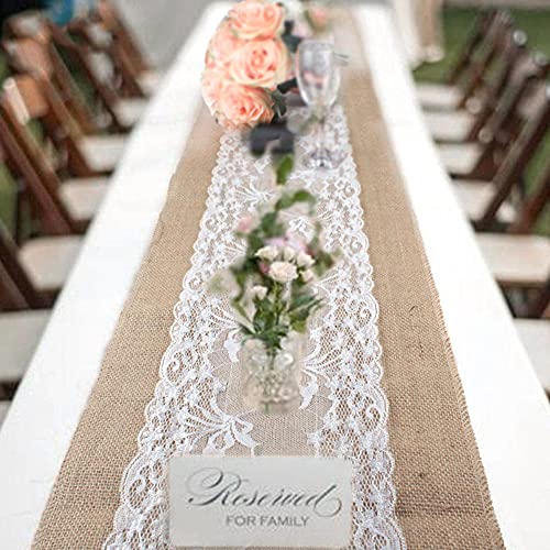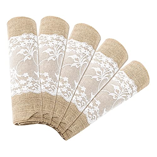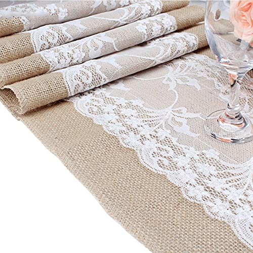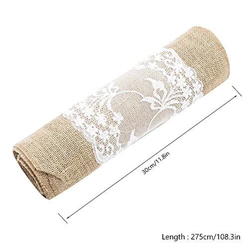 Generic - مفرش طاولة أنيق من الجوت مقاس 275 سم، مفرش طاولة من الخيش والدانتيل لحفلات الزفاف وديكور المنزل وهدية الكريسماس (اللون: 5 قطع، المقاس: 30 × 275 سم)